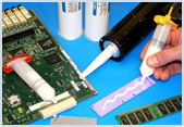 THERM-A-GAP Dispensable Gap Fillers are ideal for applications where gap filling pads overstredd component solder joints and leads which can result in catastrophic system failure. These materials are highly conformable, one component, pre-cured silicone gels that can be dispensed to fill large and uneven gaps in electronics assemblies.